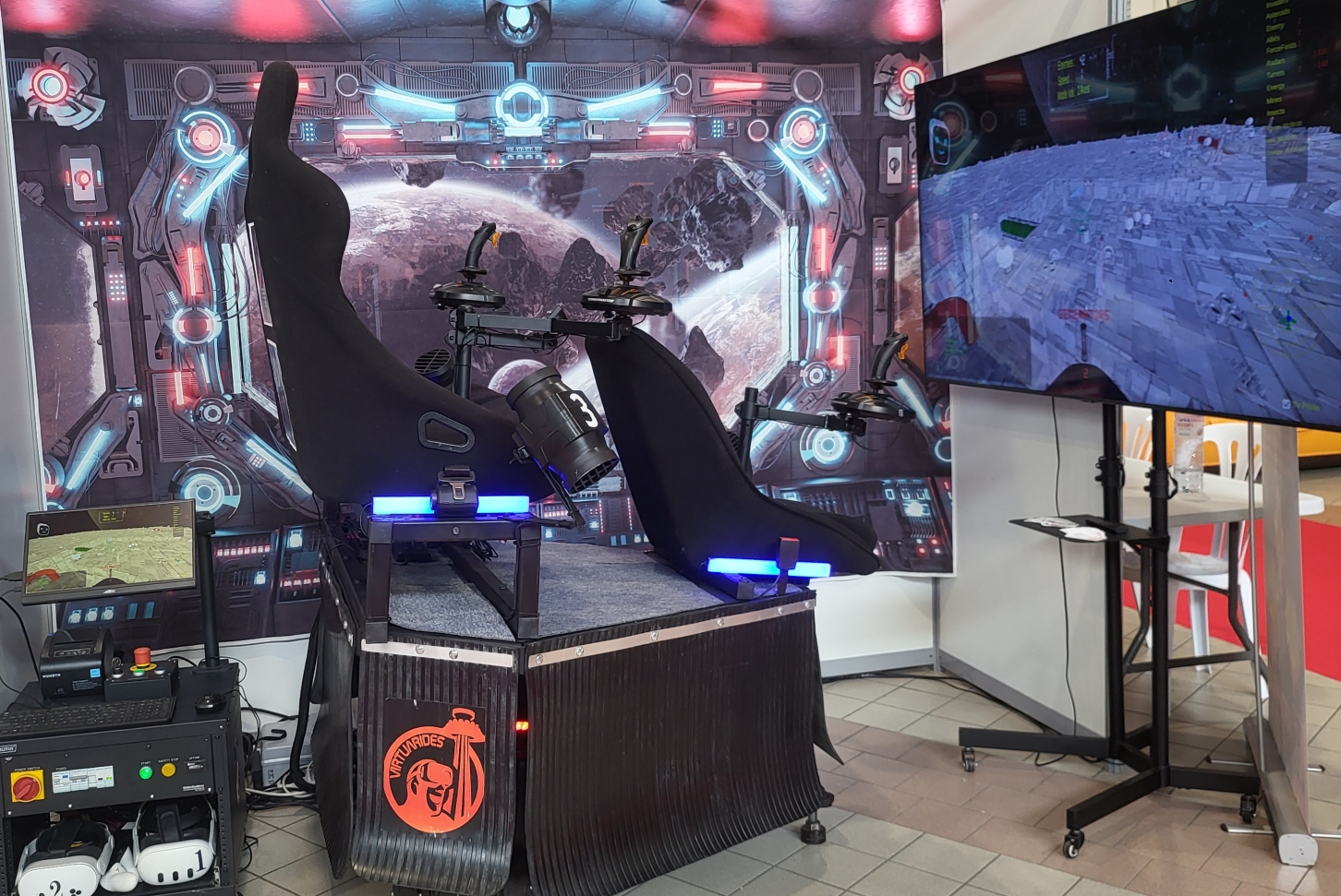 Après deux années intenses de recherche et développement, je suis ravi de vous présenter nos premiers simulateurs interactifs, une attraction révolutionnaire conçue pour toute la famille. Cette attraction novatrice fusionne habilement le monde du jeu vidéo avec le mouvement réel, créant ainsi une expérience immersive inégalée.