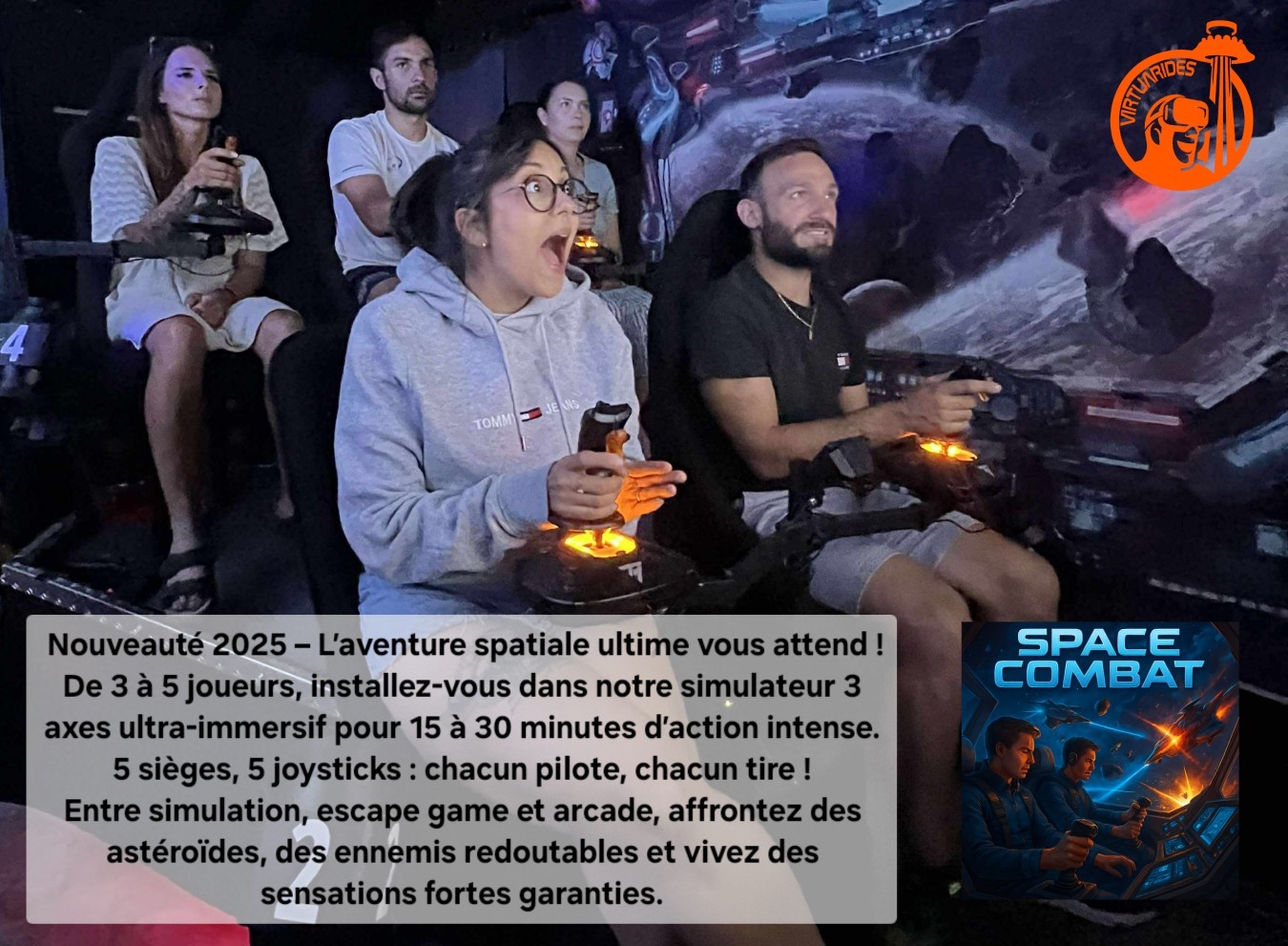 Beaucoup de fun sur notre simulateur, avec Space Combat, une aventure immersive de 30 minutes qui combine :