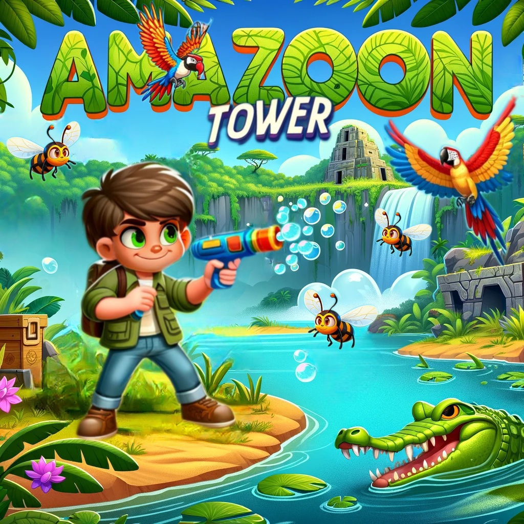 « AMAZOON TOWER” : Explorez la forêt amazonienne en réalité virtuelle, sur une plateforme mouvante, affrontant des attaques d’abeilles avec votre pistolet à bulles, tout en évitant des piranhas et des crocodiles dans ce jeu familial au style dessin animé.
